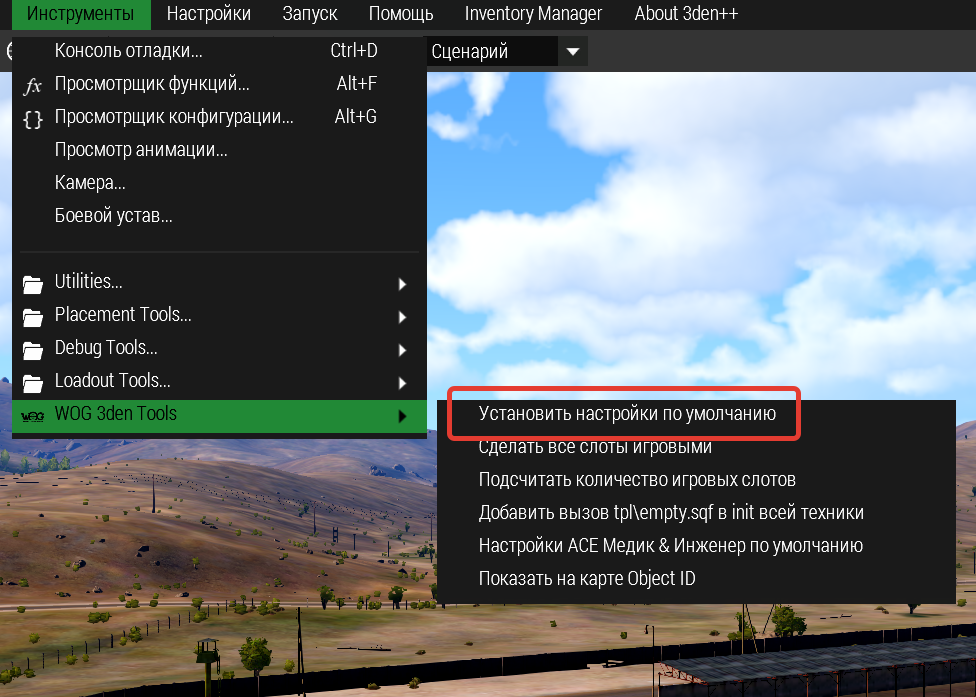 | Тема | 0000149: WOG 3den tools. Настройки по умолчанию. Виртуальный арсенал. | ||||