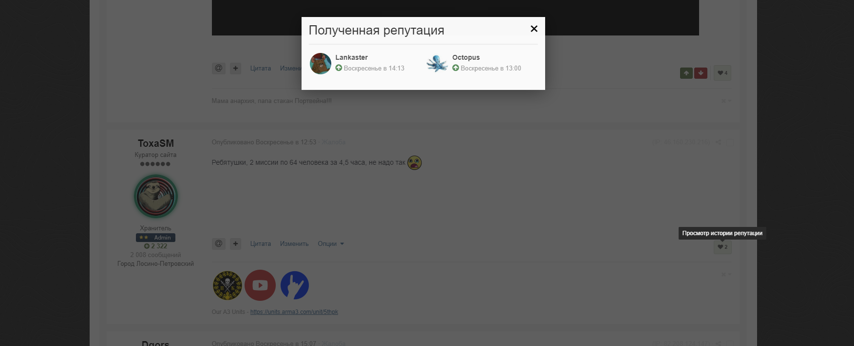 | Шаги по воспроизведению | Тыкаем свой профиль -> Нажимаем на свою репутацию -> (Слева) Форумы -> Сообщения -> Видим, что иногда некорректно отображается информация, а именно показывается действие первого оценившего,которое заменяет своей копией все последующие | ||||
