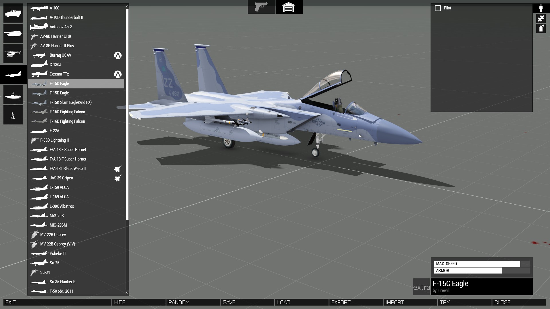 только F22 в сборке. F-15E и K имеет бомбовую нагрузку с мавериками |